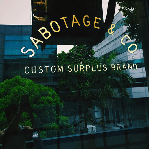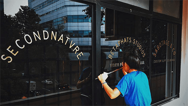 Set of three windows handpainted for local makers – SBTG SURPLUS & CO, Betaphats Studios and SECONDNATVRE. Type and design supplied by client.
